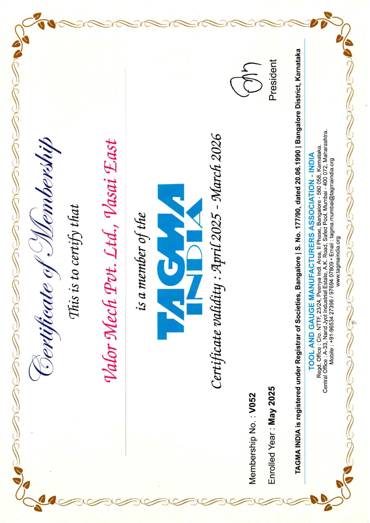 πŸ›  TAGMA India Membership – Valor Mech Pvt. Ltd.